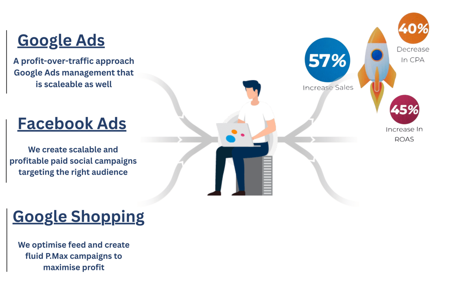.Maximize ROI with targeted Google Ads and social ads. We create high-performing ad campaigns that bring instant traffic and conversions.